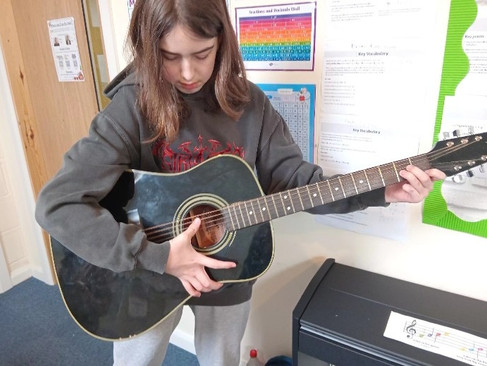 The main focus this week was mastering chord progressions. Students worked specifically with A minor, E minor, and G major, practicing on both the keyboard and the guitar. It was wonderful to see their determination as they learned how to build each chord and worked hard to transition between them smoothly.